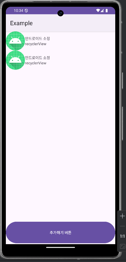 - 추가 Button을 누르면 아이템 View 생성하고 RecyclerView에 표시