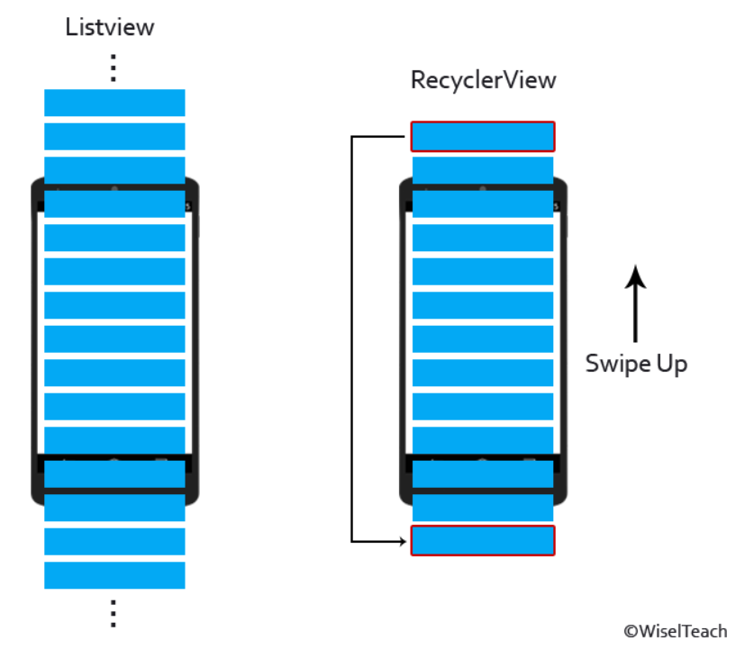 RecyclerView : 가장 위 아이템을 삭제하지 않고 아래로 재활용한다.